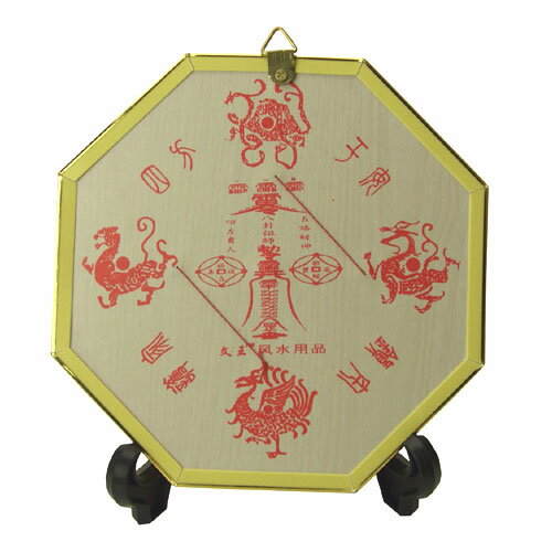 八角形の板の中央に鏡が入っており、パワー増強のために、周りには、先天八卦と九星が、 裏面には、厄除けや魔除けを意味する護符と、風水を気を整えて安定させる四神が描かれてますので、家内安全や金運祈願する際も最適です。